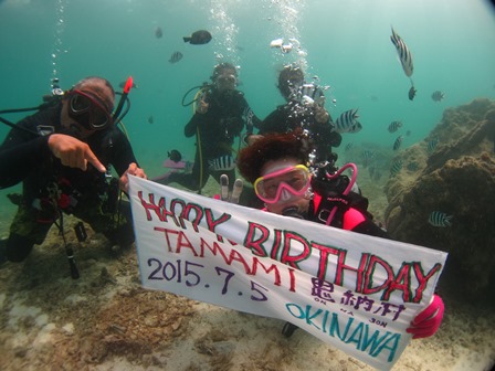 バースデーダイビング! 過去のご案内 2015.07.05 沖縄県恩納村にあるダイビングショップ ブルーリーフ 本日の出会い! 今年の3月にも遊びに来てくれたリピーター様! またまた一緒にスノーケルを楽しんで参りました! 色んなお魚に出会えてとっても気持ちよさそうに泳いでいましたね! また、一緒にお魚と遊びましょうね! 本日お誕生日のリピーター様と一緒にバースデーダイビング! 明日も楽しんでいきましょうね! ログ付けの時にサプライズが! スタッフ手作りのバースデーケーキが! 本当におめでとうございます! 明日も楽しんでいきましょうね〜!!