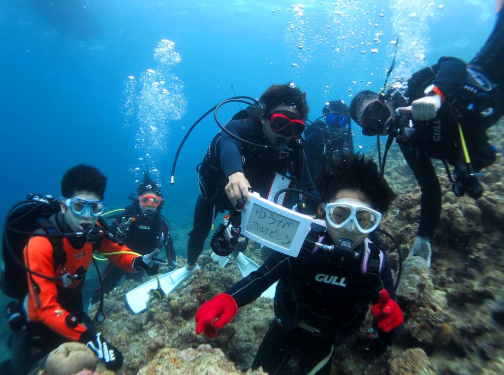 ファンダイバーのみなさんに囲まれて 水中でお祝いをしてもらいましたね~
