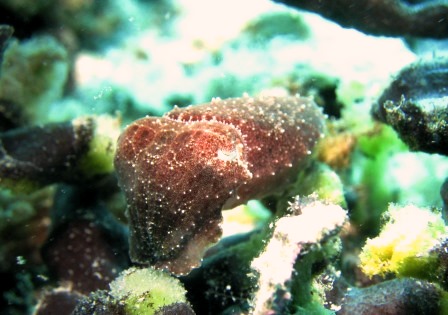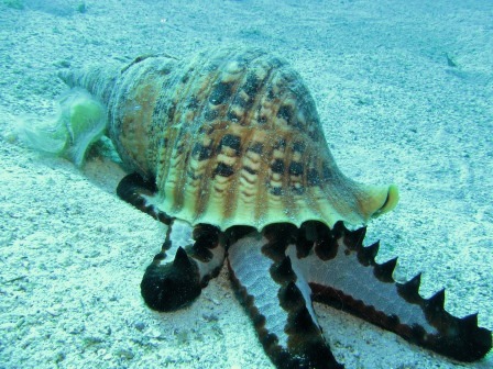 食物連鎖! ホラ貝がガッツリとコブヒトデにかぶりついてました。