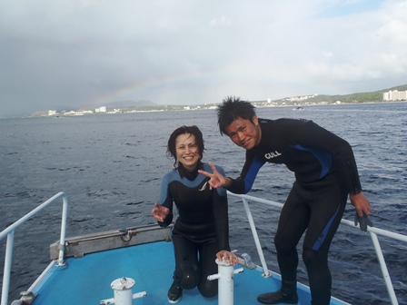そしてダイビングが終わってボートに戻ってきたらなんと虹が!!